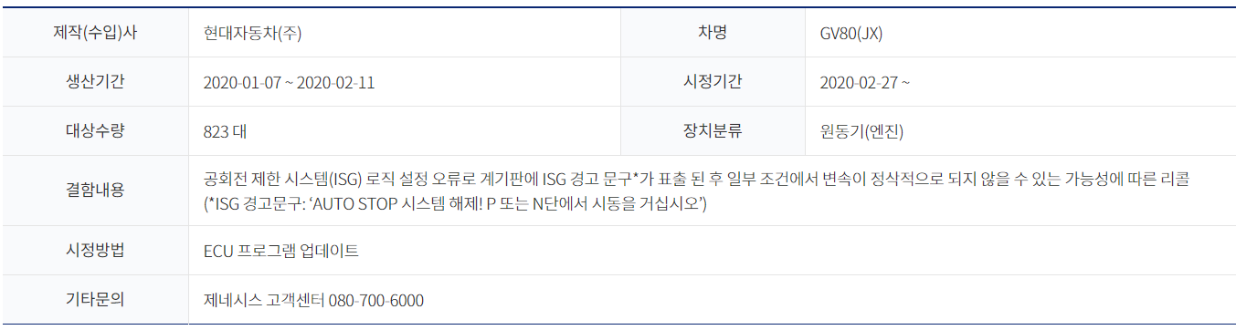 [현대] GV80 - ECU 관련 리콜