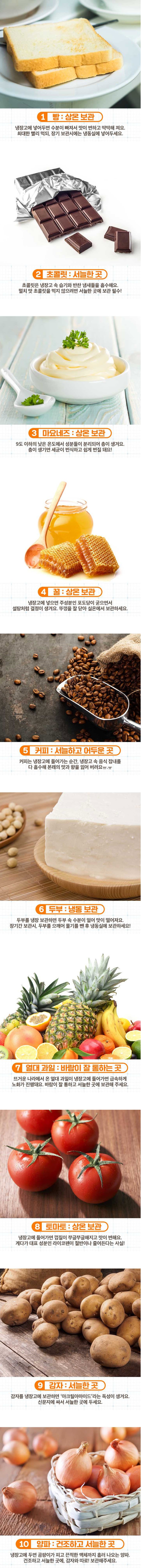 냉장고에 보관하면 안되는 10가지