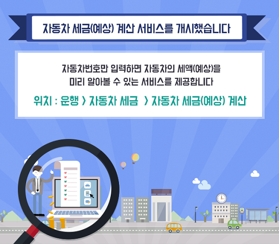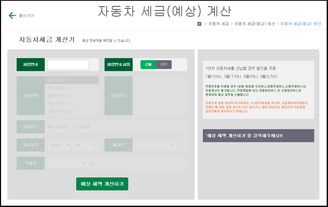 국토교통부 제공 자동차번호만 입력하면 자동차의 세액(예상)을 미리 알아볼 수 있는 서비스