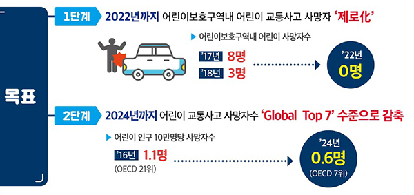 정부는 2022년까지 전국 모든 어린이 보호구역에 무인교통단속장비와 신호등 설치 완료를 목표로 올해 교통사고 우려가 큰 지역에 무인교통단속장비 1500대와 신호등 2200개를 우선 설치한다.