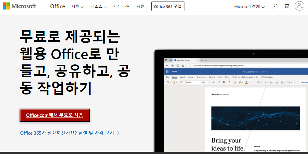 MS 오피스 온라인 ▶ https://products.office.com/ko-kr/free-office-online-for-the-web