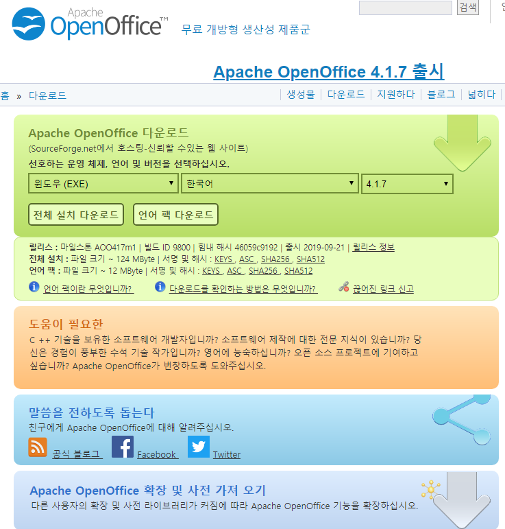 무료 오피스 프로그램 - 오픈오피스(OpenOffice) 설치