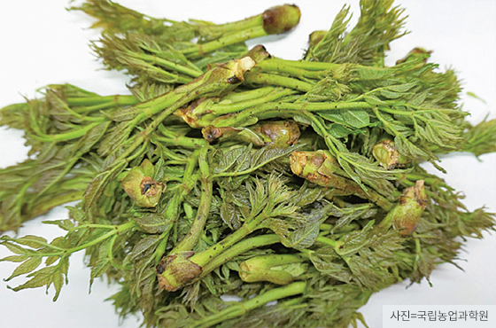독특한 향이 있어서 산나물로 먹는 두릅은 비타민 A, B, C의 함량이 많아서 원기 회복과 면역체계 강화에 도움이 된다. 또한 사포닌, 콜린 성분이 동맥경화와 심근경색 등 혈관 장애를 예방하고, 활력 증진 효과가 있다.