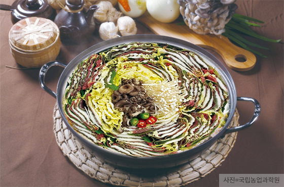 재료 : 산마늘잎 60장, 샤브샤브용 소고기 300g, 알배추 1통, 숙주, 느타리 1컵