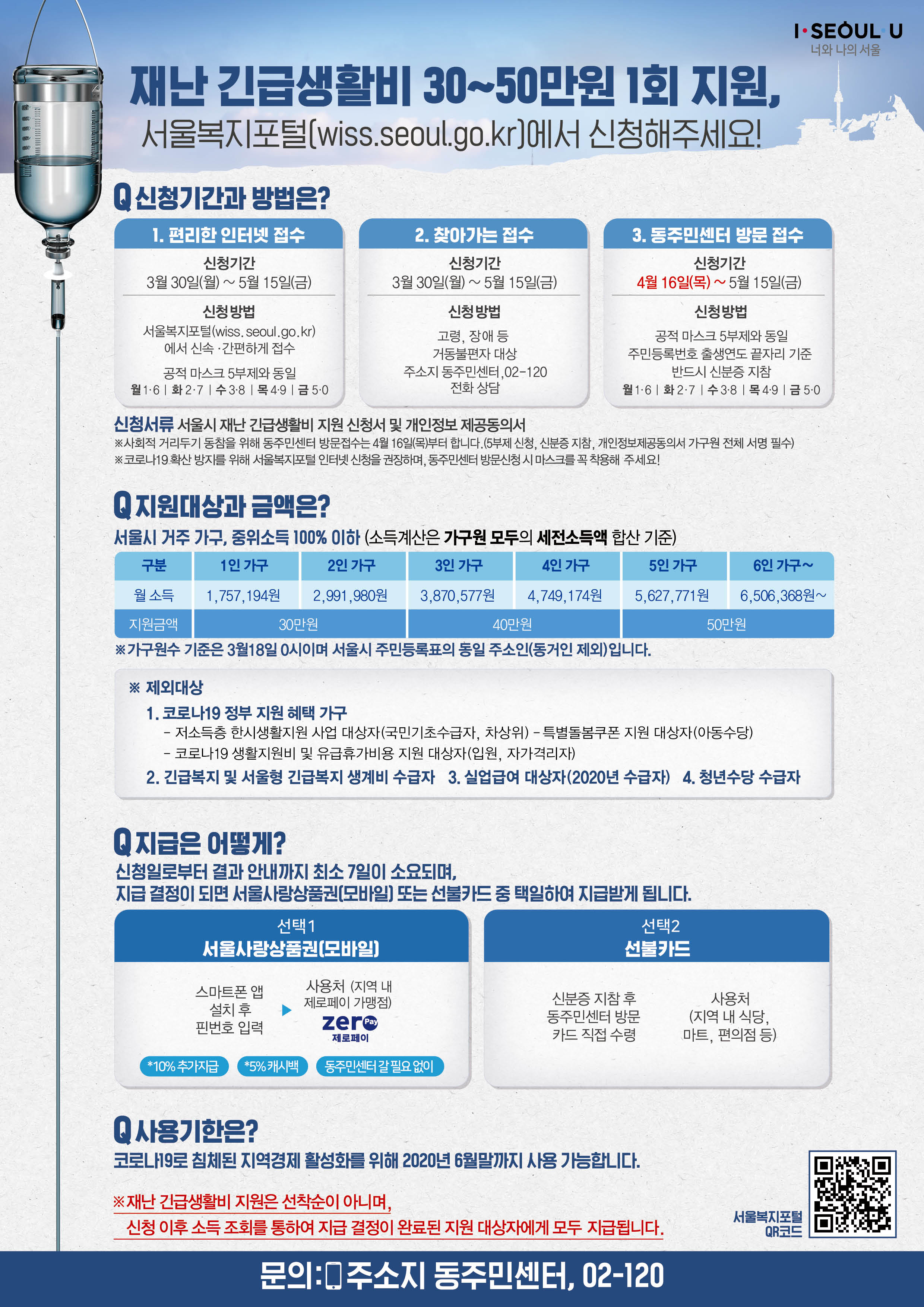 서울시 재난 긴급생활비 지원 안내 - 선착순이 아니라 소득기준