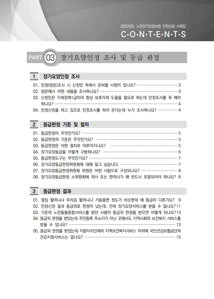 2020년도 노인장기요양보험 민원상담 사례집 - 제1장 제도일반2020년도 노인장기요양보험 민원상담 사례집 - 제3장 장기요양 인정조사 및 등급판정