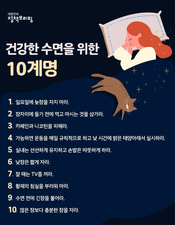 건강한 삶을 위해서 ‘건강 수면 10계명’을 잘 실천하고 노력해야 한다.