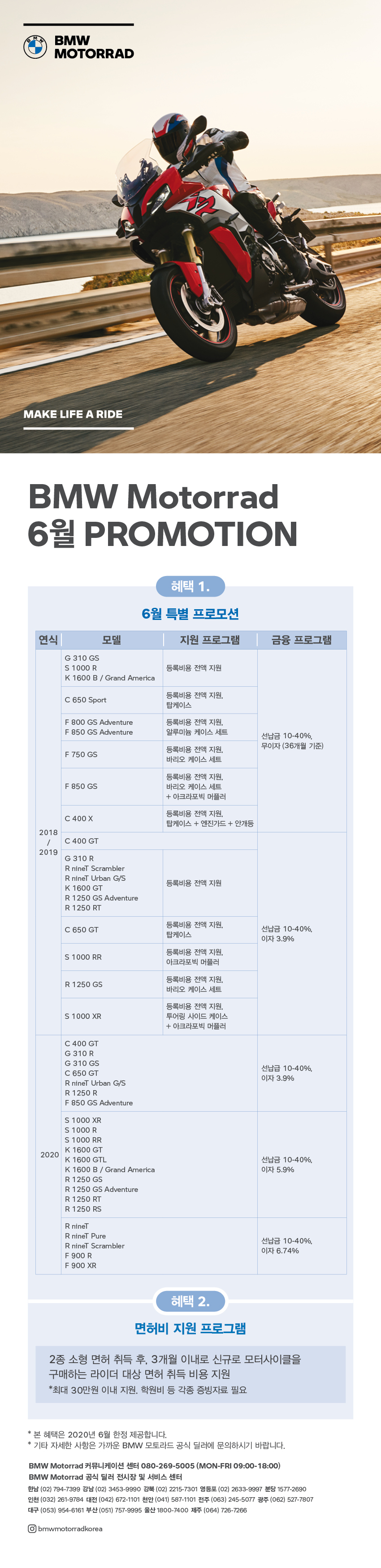 BMW Motorrad BMW 모토라드 2020년 6월 프로모션
