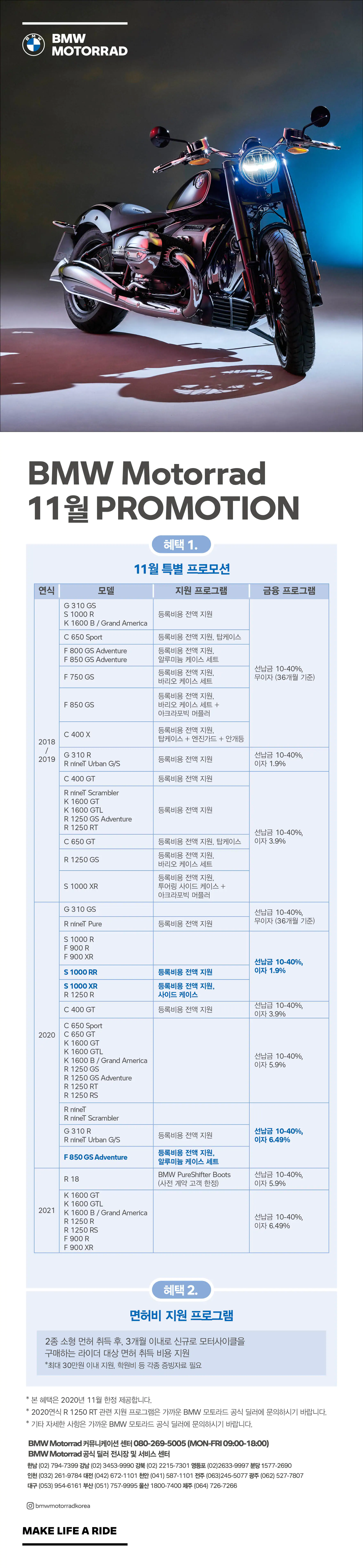 BMW Motorrad 11월 PROMOTION ▶ https://www.bmw-motorrad.co.kr/ko/experience/promotion/11_-_0.html