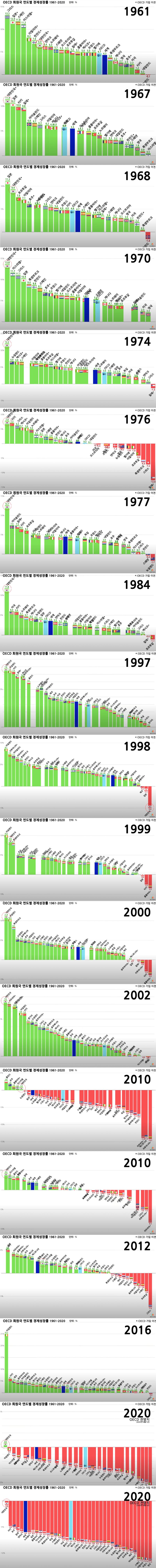 60년간 OECD 회원국 연도별 경제성장률 1961-2020
