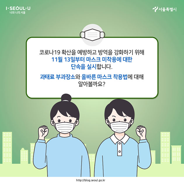 11월 13일부터 마스크 미착용에 대한 단속을 실시합니다.