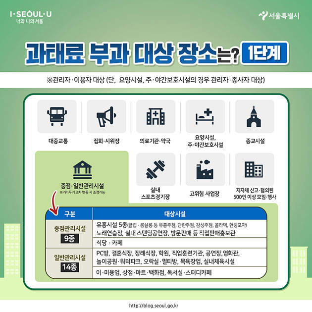 유흥시설 5종(클럽·룸살롱 등 유흥주점, 단란주점, 감성주점, 콜라텍, 헌팅포차), 노래연습장, 실내 스탠딩공연장, 방문판매 등 직접판매홍보관, 식당·카페
