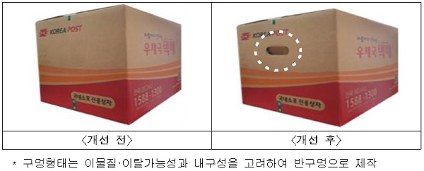 이번에 개선하는 소포상자는 수요가 많은 수도권과 강원지역 우체국에서 먼저 판매하며 내년까지 전국으로 확대할 계획이다.