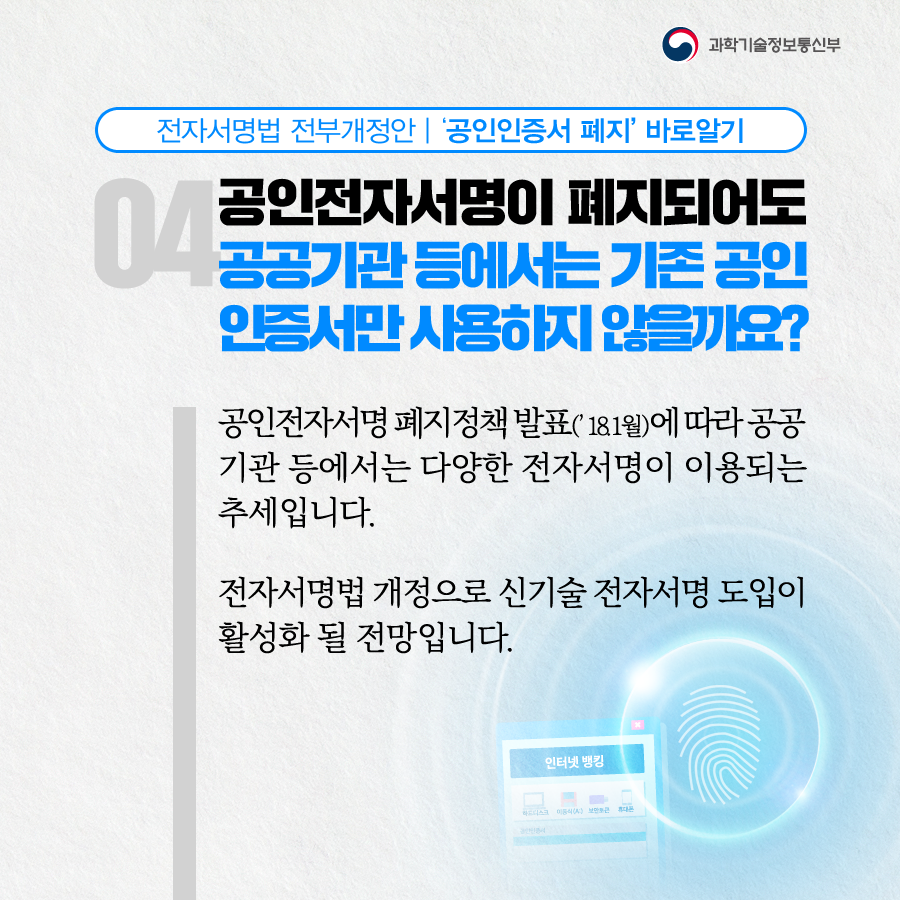 공인인증제도가 폐지되면서 블록체인, 생체인증 등 신기술 기반의 전자서명이 활성화될 것으로 전망됩니다.