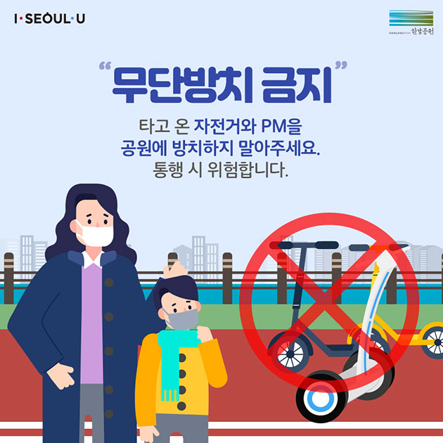 한강공원에서는 자전거와 개인형 이동장치의 무단방치를 금지한다.