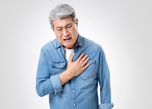 갑작스런 가슴통증, 식은땀, 호흡곤란, 구토, 현기증, 통증 확산