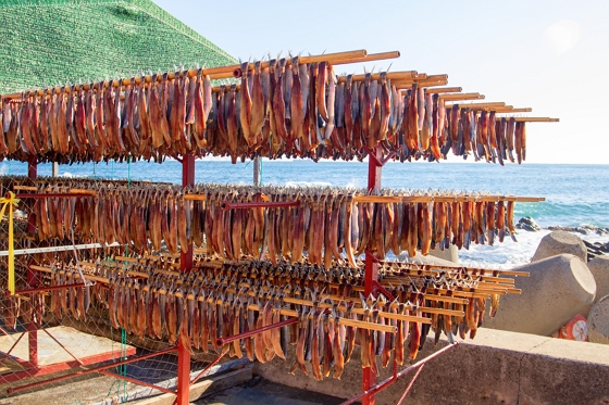 과메기는 청어나 꽁치를 차가운 바닷바람과 청명한 햇살에 얼렸다 녹이기를 거듭해 말린 것으로, 쫀득한 식감과 특유의 향이 입맛을 사로잡는다.