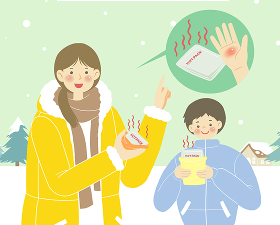 최고 70도까지 올라가는 핫팩의 경우 2시간 지속적으로 피부에 노출될 경우 저온화상을 입게 된다. 따라서 피부에 바로 닿지 않도록 옷 위에 사용한다.