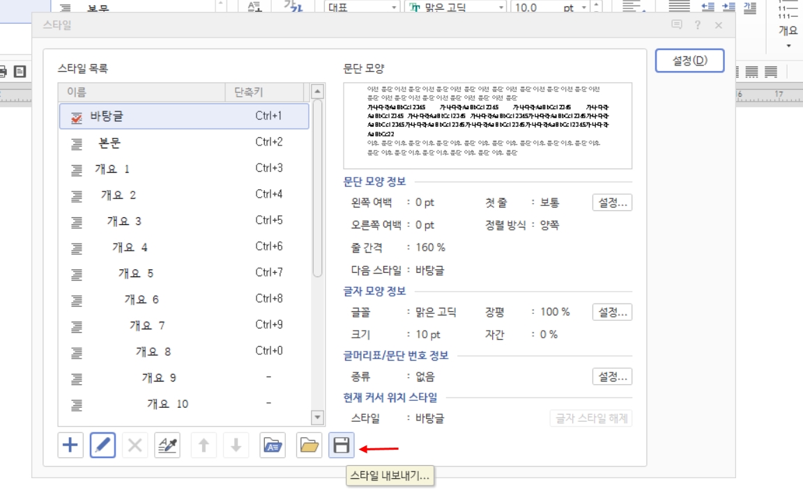 '스타일' 창 하단 디스크 모양 '스타일 내보내기' 를 클릭해 줍니다.