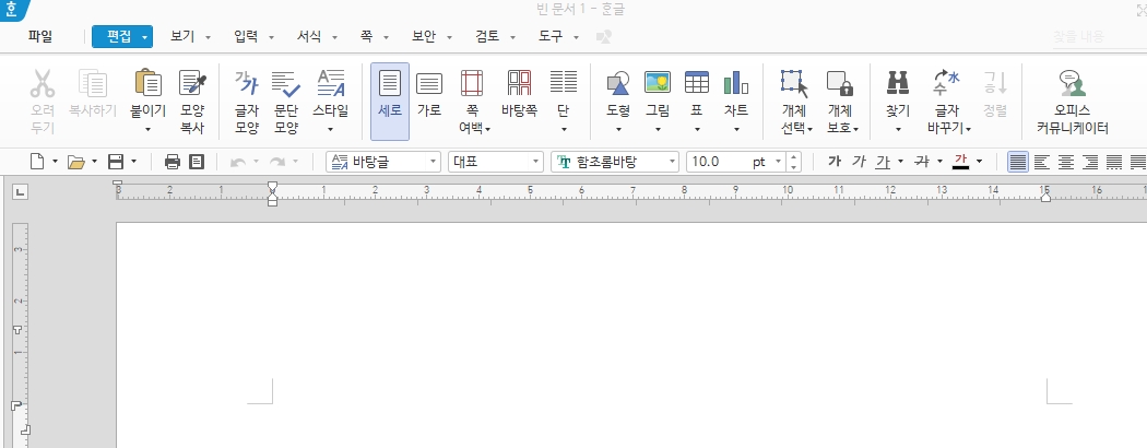 한글 2018 버전 기준 기본 글꼴은 함초롱바탕 10pt로 지정되어 있습니다.
