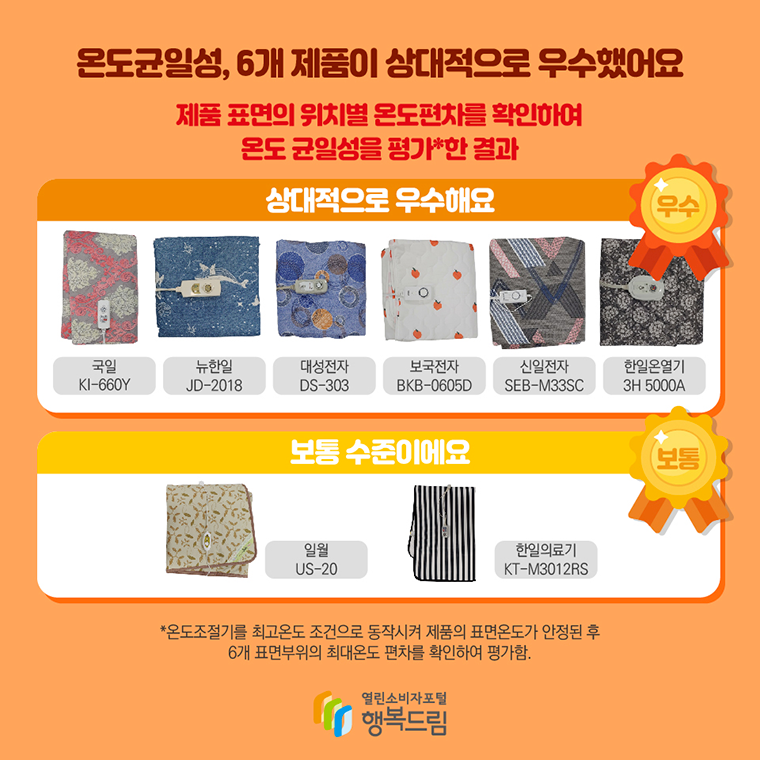 # 전기장판, 온도균일성·소비전력량에서 차이 있어요