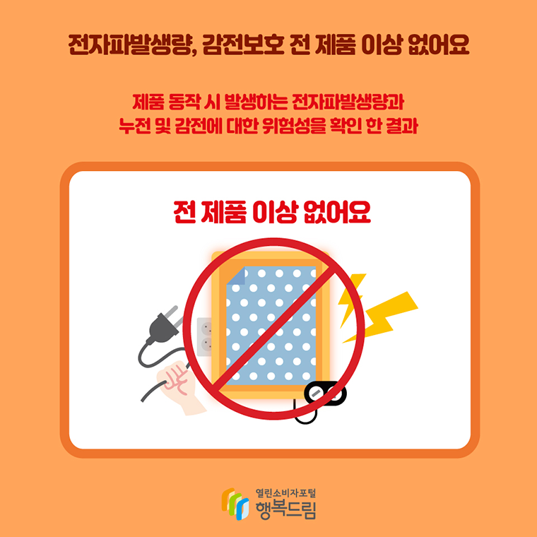 # 전자파발생량, 감전보호 전 제품 이상 없어요