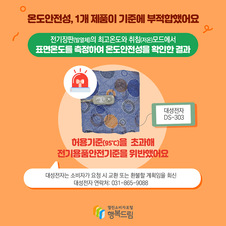 # 온도안전성, 1개 제품이 기준에 부적합했어요