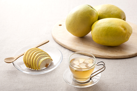 산미가 강하고 단단하며 은은한 향기가 강한 모과는 '동의보감'에 따르면 구토와 설사를 다스리고, 소화를 도와주는 과일로 나와 있고, '본초강목'에는 가래를 멎게 해주며 주독을 풀어준다는 기록이 있다.