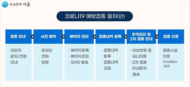 예방접종 관련 정보 안내와 원활한 사전 예약 시스템 운영을 위해 코로나19 전용 예방접종 시스템을 구축한다.