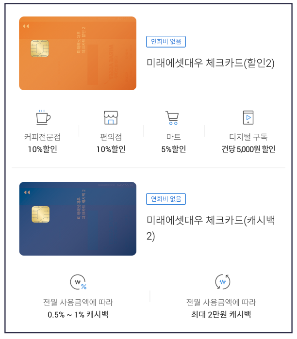 2. 미래에셋대우 - 미래에셋대우 체크카드(할인 2)