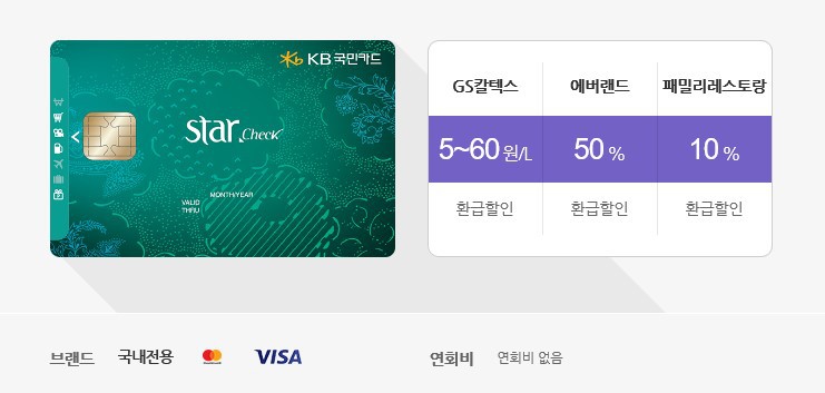 [스타체크카드] GS칼텍스 50~60원/L, 에버랜드 50%, 패밀리레스토랑 10% - KB 국민카드