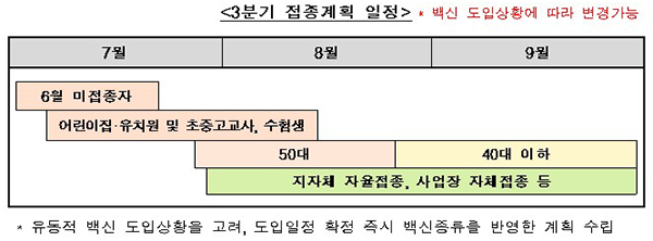 고3 수험생·교직원·50대 7월부터 접종…40대이하 8월부터 사전예약 순서로