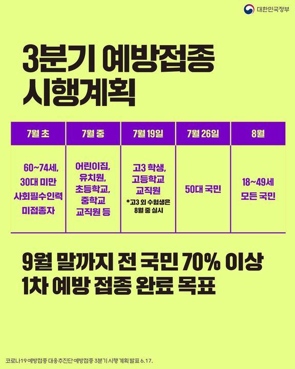 ▶상세 일정 자세히 보기(7-9월중 18세 이상 국민 1차접종 완료-코로나19 예방접종대응추진단)