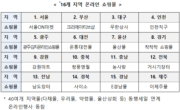 (중앙-지방 연계) 16개 지역 온라인몰과 지역행사를 연계한 전국적 소비행사