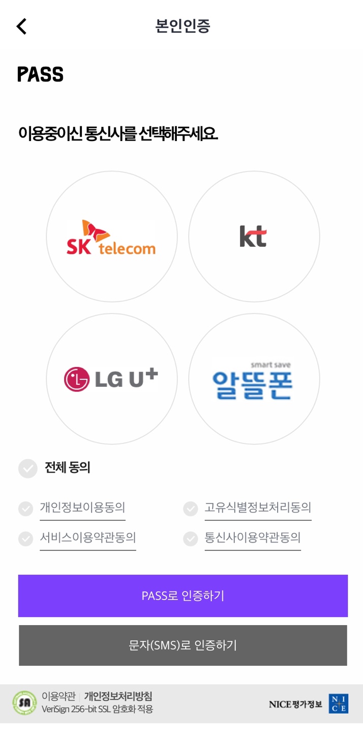 | 본인인증 안내 본인명의 기기 및 한 사람당 한 기기만 허용 |