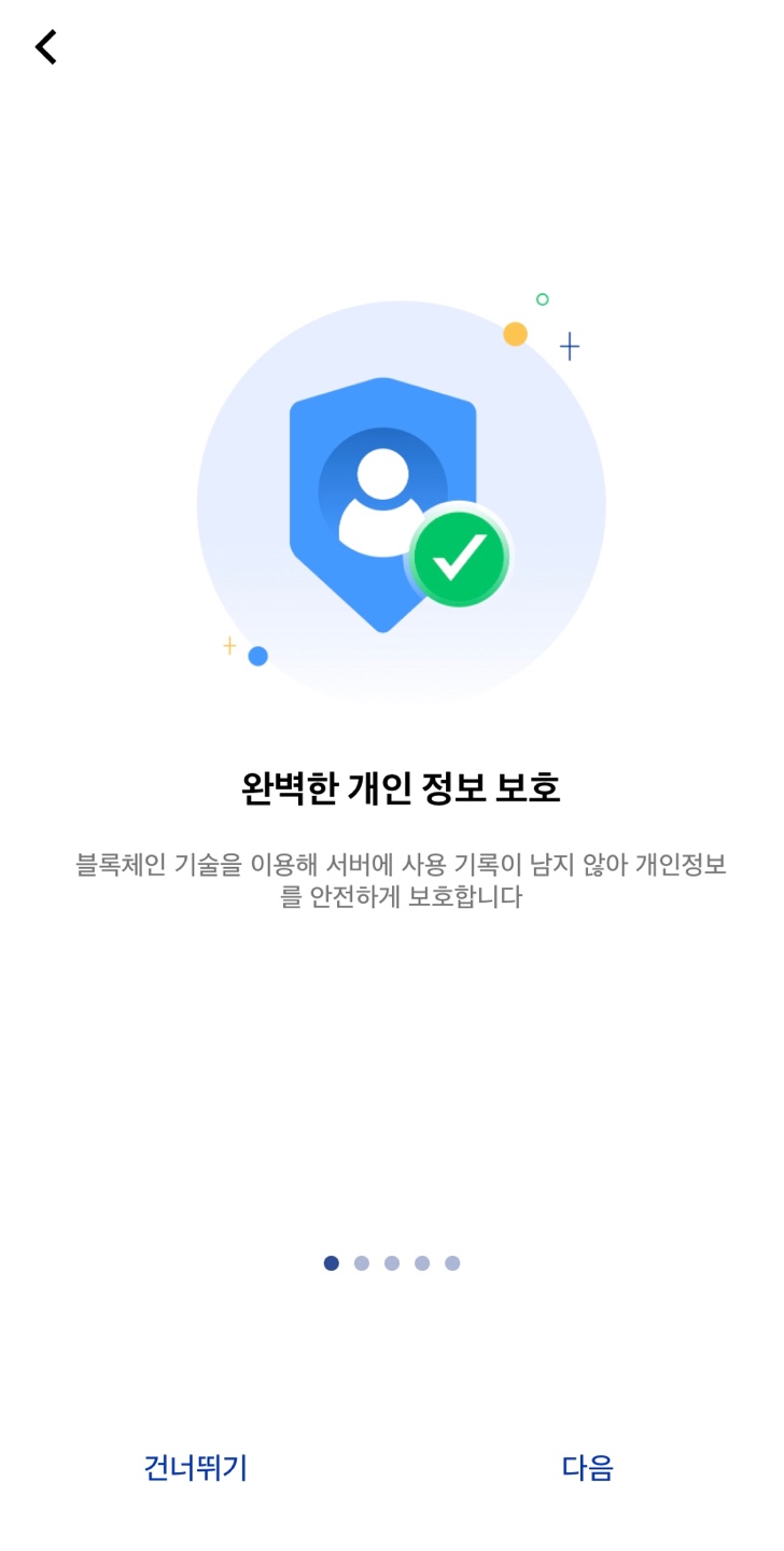 | 완벽한 개인 정보 보호 | 블록체인 기술로 증명서의 위변조를 불가능하게 하고 사용 이력이 서버에 전혀 남지 않아 프라이버시를 완벽하게 보호합니다. |