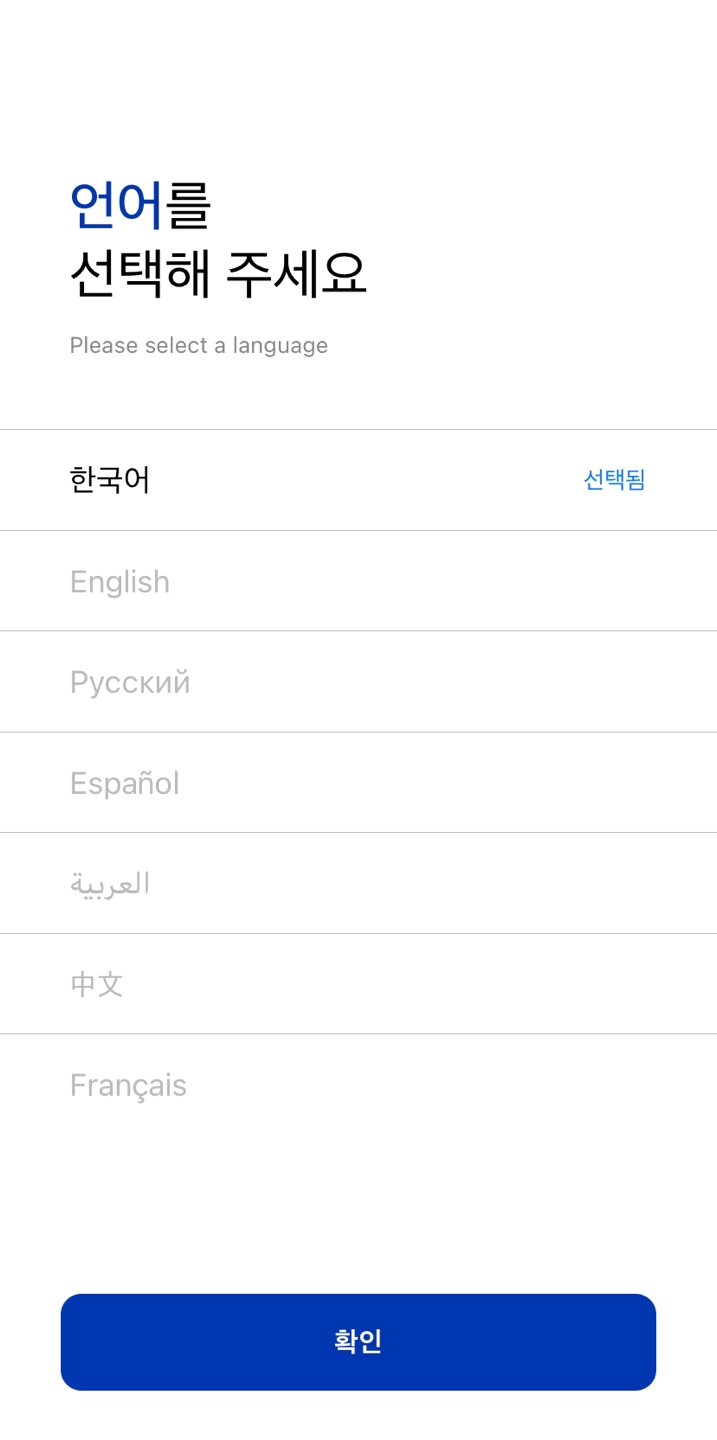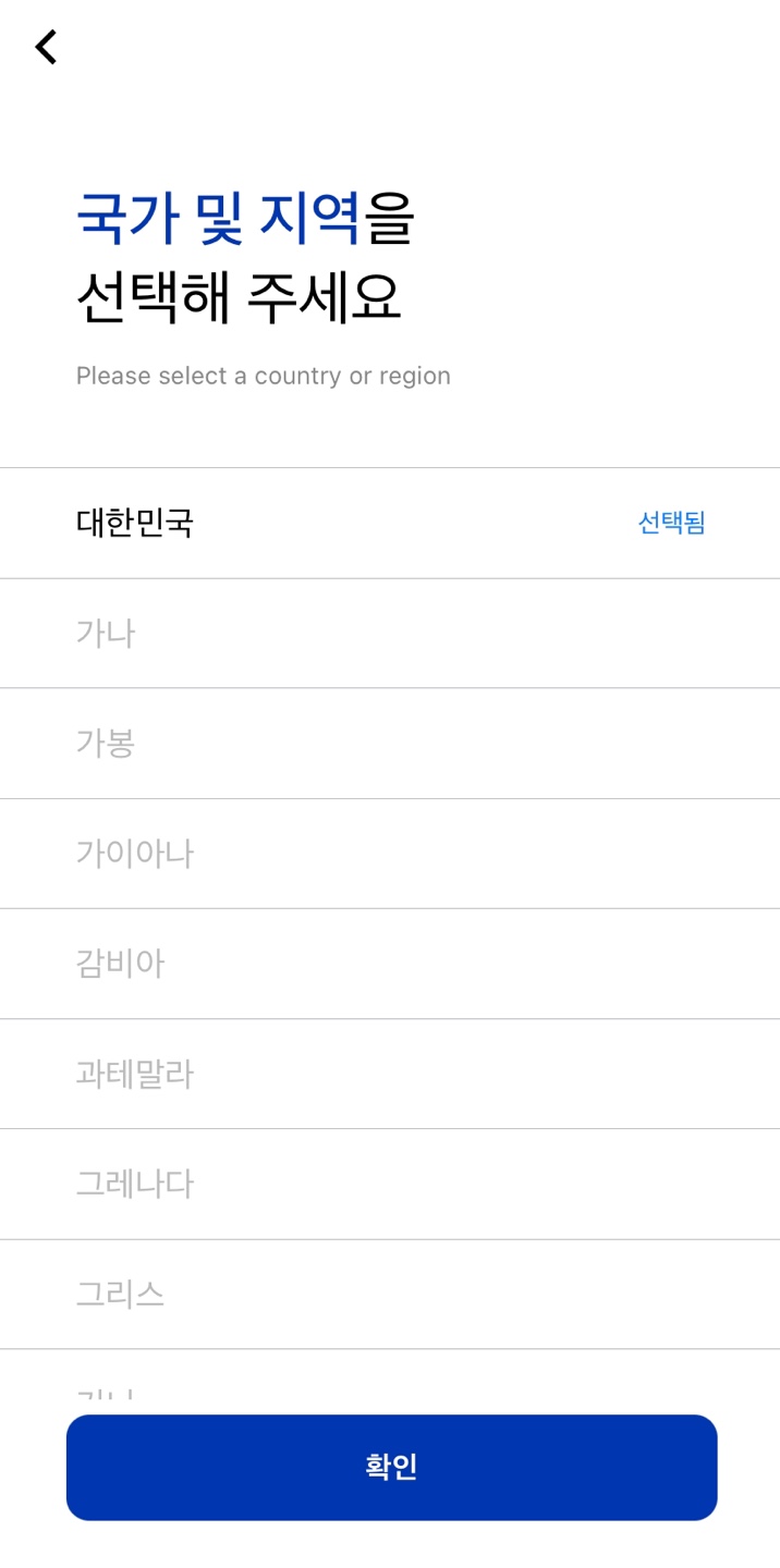 | 앱 설치 | 언어 선택 | 국가 및 지역 선택 |