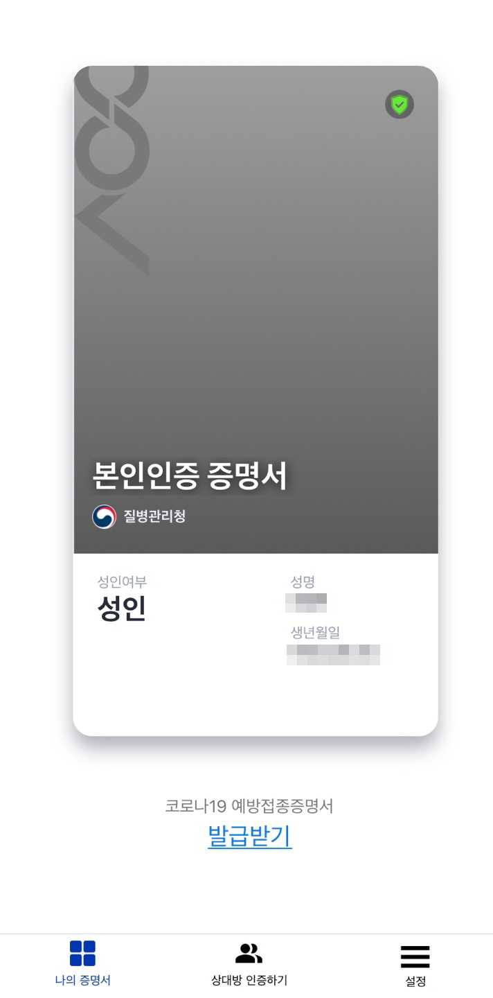 | 다양한 인증 시스템으로 활용 가능 | 코로나19 예방 접종 증명 뿐만 아닌 성인 인증을 비롯한 다양한 인증 시스템으로 활용할 수 있습니다. |
