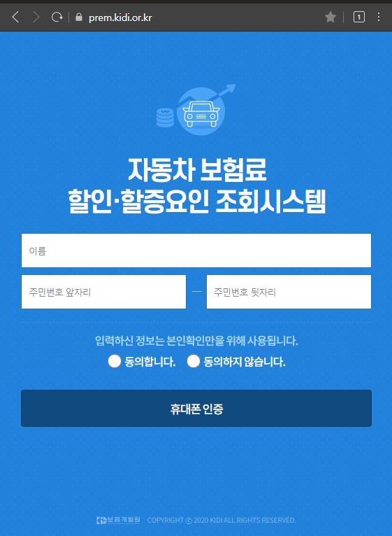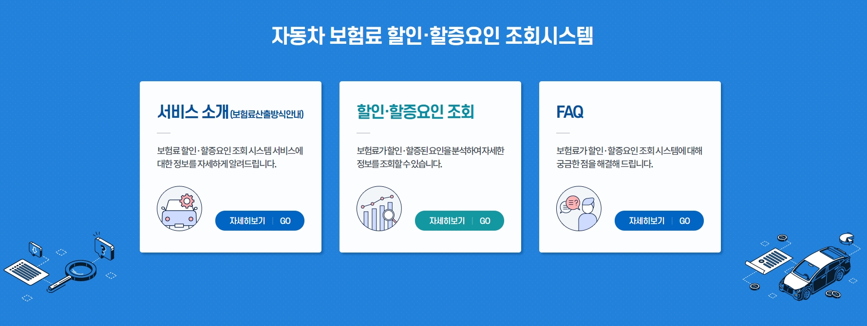 보험개발원에서 서비스 하고 있는 [자동차 보험료 할인·할증요인 조회시스템]은