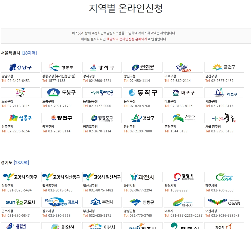 - 주정차단속알림시스템 지역별 온라인신청