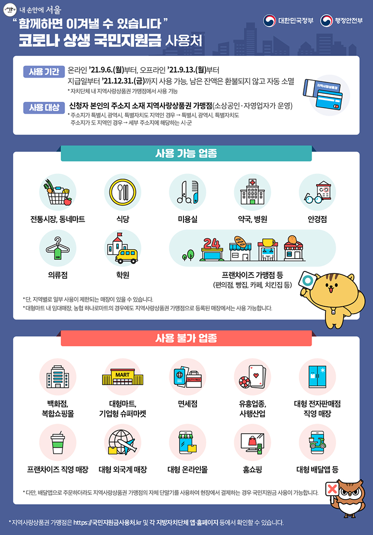 국민지원금은 지역사랑상품권 가맹점에서 사용이 가능하다.