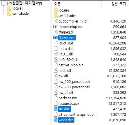 다운로드 된 zip 압축 파일을 열어보면 게임 실행파일인 Game.exe는 없고, 대신 악성코드인 “Game..exe”가 있다. [그림 4]를 보면, 압축 파일에서 악성코드는 런처(Launcher) 악성코드인 Game..exe, 다운로더를 정상 프로세스에 인젝션하는 wode.dat, 이를 실행시키는 또 다른 런쳐를 드랍 및 실행하는 std.dat이다.