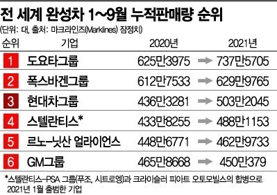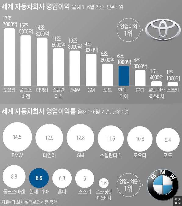 세계 자동차회사 영업이익(올해 1~6월 기준)