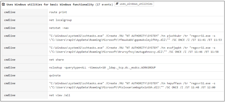 또한, 감염된 시스템에 대해 수집한 정보를 POST 커넥션을 통해 C2에 전송하게 되는데, OS 버전 및 비트 수, 사용자 이름, 컴퓨터 이름을 비롯한 일반 시스템 정보 외에도 아래와 같은 시스템 유틸리티 명령어를 통해서도 정보를 수집하는 것을 확인할 수 있다.