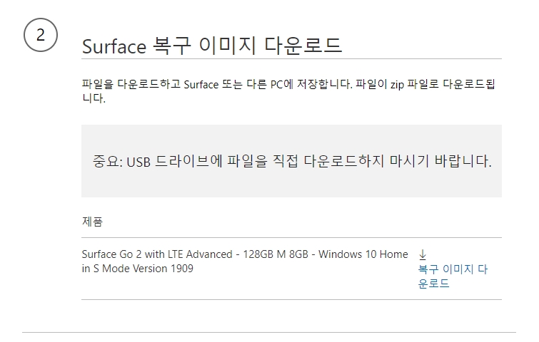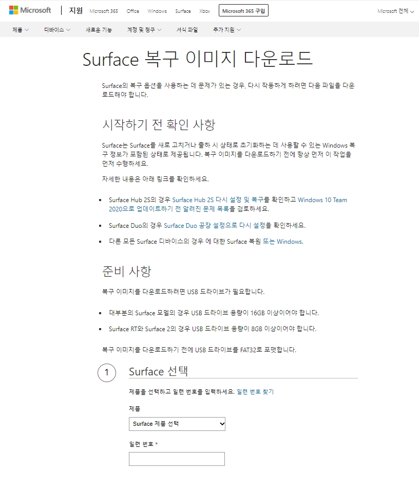 Surface 복구 이미지 다운로드