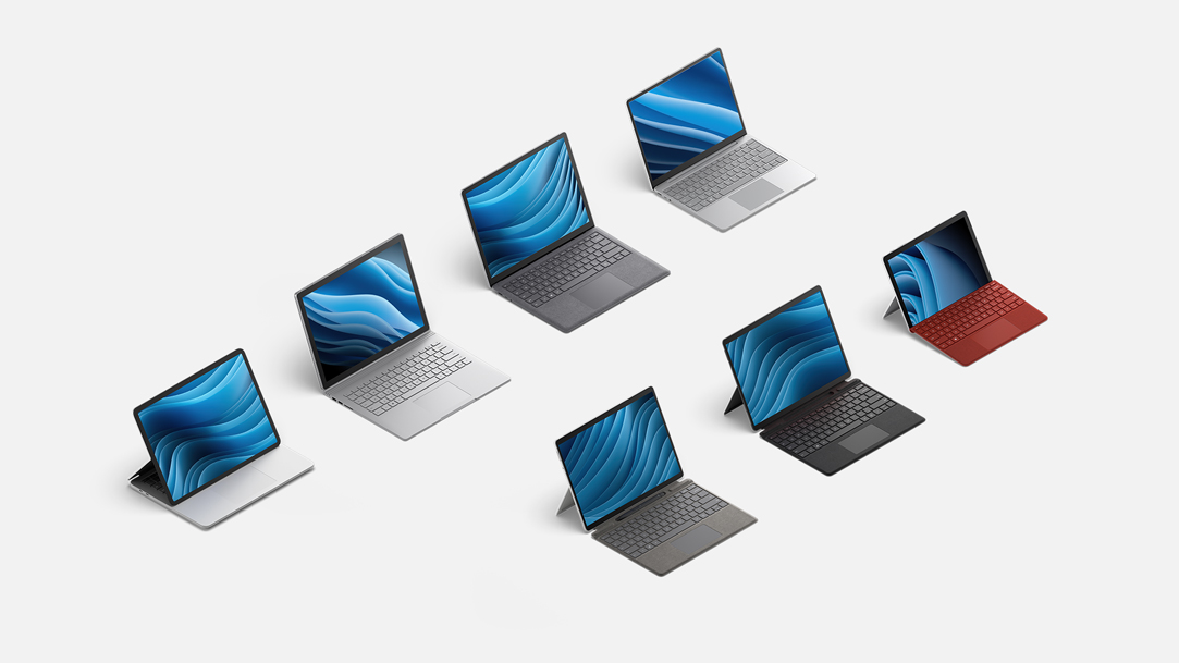 | Surface Duo, Surface Duo 2, Surface Studio Surface Studio, Surface Book 2, Surface Book Surface Book 3, Surface Book 2, Surface Laptop 1, Surface Laptop 2, Surface Laptop 3, Surface Laptop 4, Surface Laptop Go, Surface Laptop Studio Surface Pro,, Surface Pro 2, Surface Pro 3, Surface Pro 4, Surface Pro 버전(1796), Surface Pro 6, Surface Pro 7, Surface Pro 7+, Surface Pro 8, Surface Pro X, Surface RT, Surface Go, Surface Go 2, Surface Go 3, Surface Hub 2S |