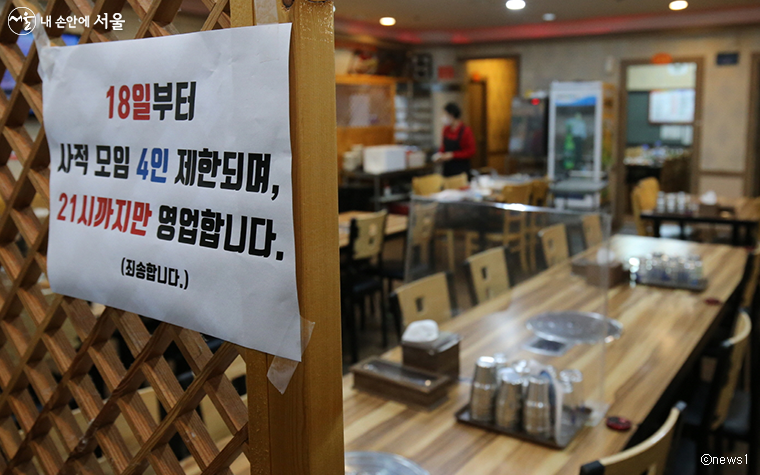 다시 '멈춤'…사적모임 최대 4명, 식당카페 밤 9시까지