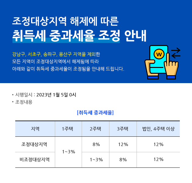 조정대상지역 해제에 따른 취득세 중과세율 조정 안내