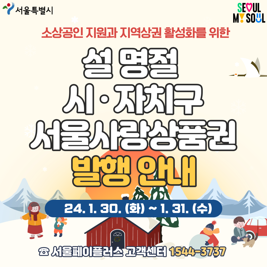 | 서울시, 설날맞이 서울사랑상품권(자치구) 7% 할인 발행(1/18~19) (0) | 2023.01.17 |