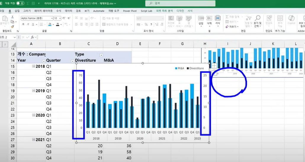 - 세로막대 + 꺽은선 혼합 차트를 활용한 가독성 높은 차트 만들기